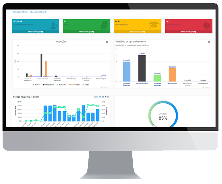 Para adaptação aos seus processos, desde dashboards visuais e relatórios analítcos até sessões presenciais ou planos de formação específicos, garantindo evolução contínua da sua plataforma.